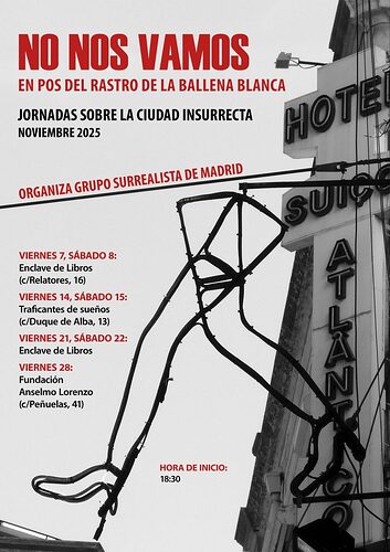 Y Madrid, con varias convocatorias del ESLA EKO, Ovejas Negrax o el Grupo Surrealista de Madrid para estos días de fresquito.
