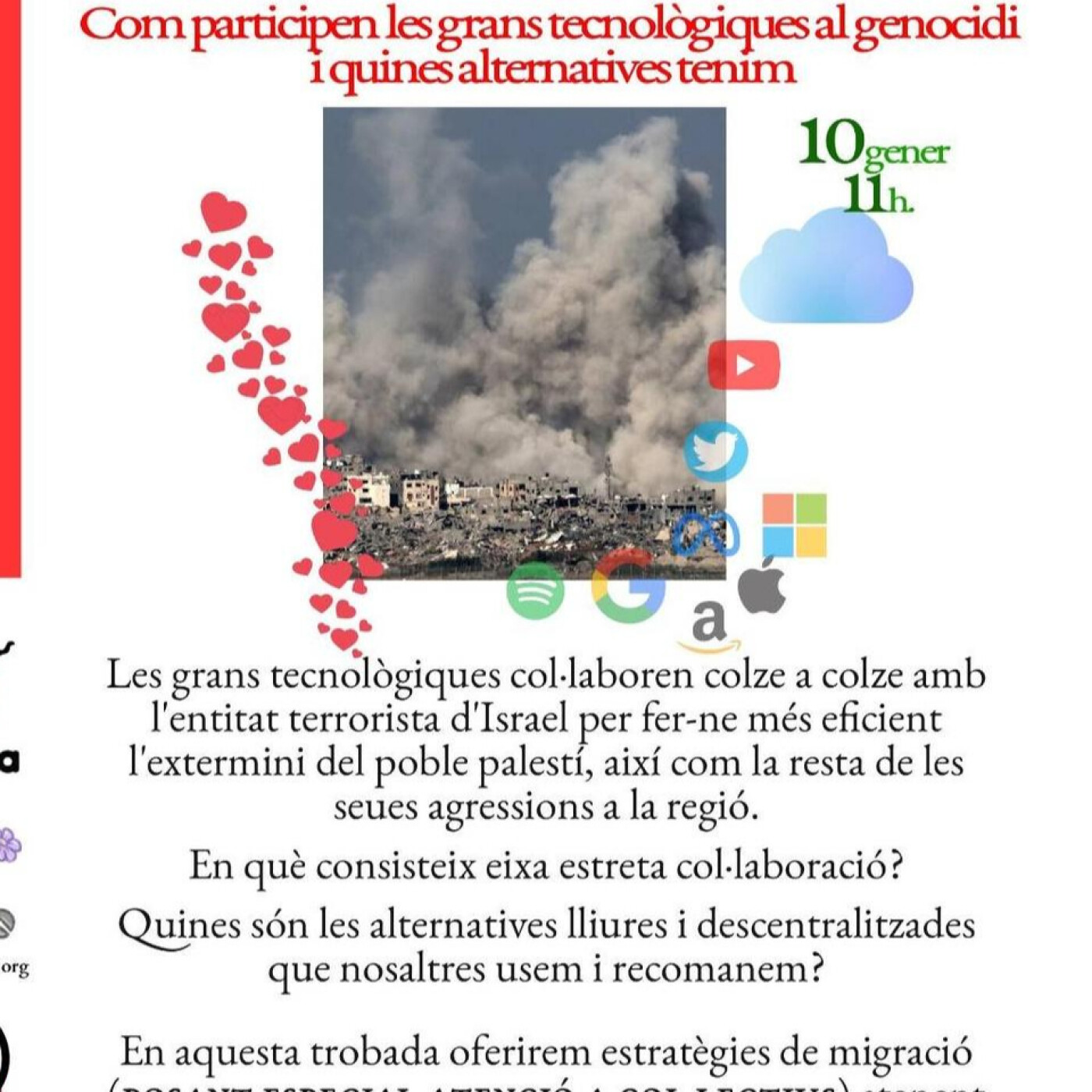 En esta ocasión no nos da la vida para hacer un episodio, así que reciclamos el audio de la jornada del día 10 de enero en el Ateneu Llibertari del Cabanyal titulada "Boicot Digital al Sionisme" donde se habló de la relación de las big tech con el genocidio en Palestina y qué alternativas tenemos para no usarlas y colaborar con todo esto. Para más info sobre el evento, hay material de las jornadas subido en la web de Radio Malva.