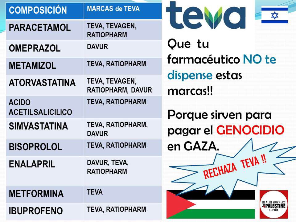 Si queréis saber de otras empresas israelíes que colaboran con el genocidio y que desde BDS nos animan a boicotear: https://archive.org/download/266-hd-a-boicot-teva-boicot-israel/Listado-productos-ampliado%20%281%29.pdf