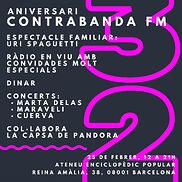 Emissió especial del 32 aniversari de Contrabanda FM que vam celebrar el passat dissabte 25 de febrer a l’Ateneu Enciclopèdic Popular. Gràcies a todes per acompanyar-nos durant la jornada, en especial a les que vau fer possible aquest programa. Vam entrevistar Metzineres, el programa de ràdio feminista De Raíz des de Granada, a Uri Spagueti i algunes de les pekes que van asssitir al seu espectacle (Ayla, Amaru i Candela), La Capsa de Pandora, Josep Navarro del programa de jazz Saxofòn a Radio Ona de Sants-Montjuïc, Hara i Guille qui organitzen la commemoració del 10é aniversari d’Uri Prozac i Nancy Garin. Gràcies també a les activistes antiracistes que van compartir audios de la manifestació contra l’ampliació del mòdul de dones del CIE a Zona Franca amb la nostra companya Bea Cantero per participar en aquest programa, que tenia lloc paral•lelament a la manifestació. Agraïm de nou a les artistes que van actuar desinteressadament en la celebració: Uri Spagueti, El Maravelí, literatura oral y guitarra solista, Marta Delas i Cuerva i de manera espontània Natxuta i Dj Martian, a l’ Ateneu Enciclopèdic Popular del que en formem part i a La Capsa de Pandora per col·laborar en la producció musical de l’esdeveniment