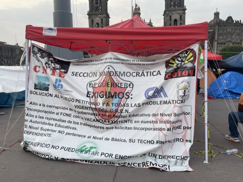 A casí 15 días de su instalación, la tarde - noche de este 28 de mayo, desde el zócalo de la Ciudad Monstruo, platicamos con el maestro Gerardo de la Coordinadora Estatal de Trabajadores de la Educación en Guerrero (CETEG), quien nos comentó sobre las razones de iniciar una jornada de movilizaciones previo al cierre de gobierno del presidente López Obrador, las demandas de l@s maestr@s y los esfuerzos por visibilizar la importancia de la educación en México.