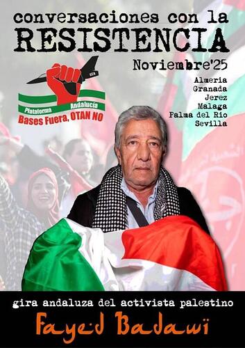 El acto se realizó en el Centro Andaluz del Pueblo «Blas Infante» de Granada el pasado 25 de noviembre y se enmarca en la gira andaluza que ha llevado a Fayez desde Jerez hasta Almería pasando por Sevilla, Granada o Málaga. Esta gira estuvo organizada por la Plataforma OTAN no, Bases Fuera de Andalucía.