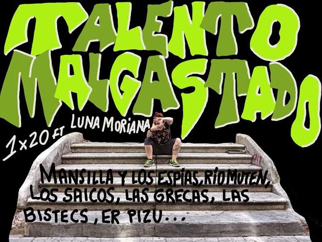 En este vigésimo episodio repitió visita Luna Moriana, que ya estuvo hace un par de semanas con su compañera Meri hablándonos del Insumusas Fest que se celebró recientemente. Luna es poeta, ilustradora gráfica, speaker, emcee…llámalo como quieras, ella se define como persona que habla, y en Talento Malgastado estaba en el sitio adecuado para dar rienda suelta a su labia. Nos trajo una playlist variadísima que va desde el rap andaluz hasta el flamenco, pasando por distintos palos de punk o el folk, pero toda la música que sonó resumía las particularidades del estilo de Luna al hablar o escribir: la belleza de la cotidianeidad, el sentir popular y la visceralidad más pura. Así fueron saliendo temas de conversación como el elitismo y la complacencia de la poesía, la dificultad para separar el artista de la obra o sus influencias y próximos eventos en los que está involucrada. Hablando de eventos, te invitamos a que mañana 1 de junio acudas a la jornada que organiza Radio Almaina sobre la Historia de las Radios Libres en el estado español.
