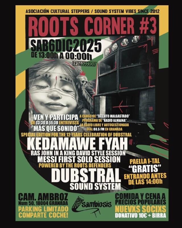 Aprovechamos la ocasión del 12 aniversario de Dubstral SoundSystem y la inminente nueva Dub Corner #3 que celebran el próximo sábado 6 de diciembre en el local de Sambiosis (Cam. de Ambroz, 50) para publicar esta conversación musicada con Siko. Para esta ocasión especial han decidido contar con Ras John de Kedamawe Fyah, Soundsystem de UK afincado desde hace 20 años en La Alpujarra y nombre fundamental en la historia del dub granadino, además de sesiones de Messi de Steppers y los propios Dubstral. Entrando antes de las 14:00 puedes disfrutar de una paella vegana ital y a las 13:30 está prevista una conversación en directo con organiadorxs, artistas y participación del público conducida por Talento Malgastado. Les agradecemos la invitación desde aquí. Ven, participa y disfruta.